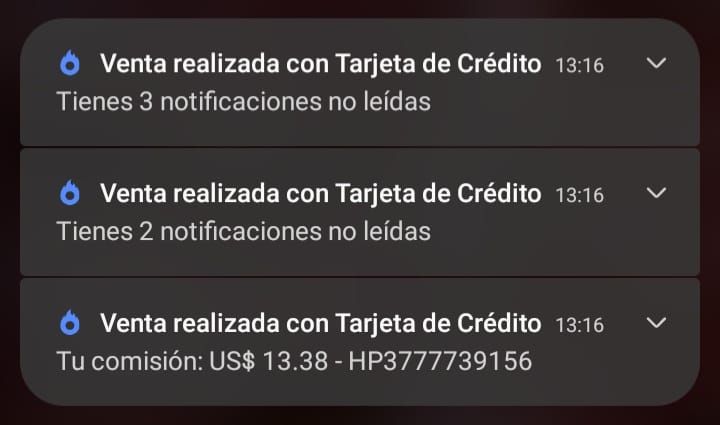 Celebra, mira tu smartphone cómo llegan las notificaciones de comisiones recibidas!