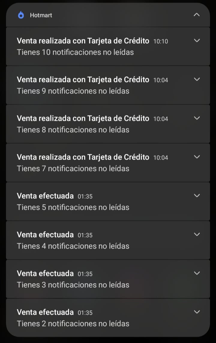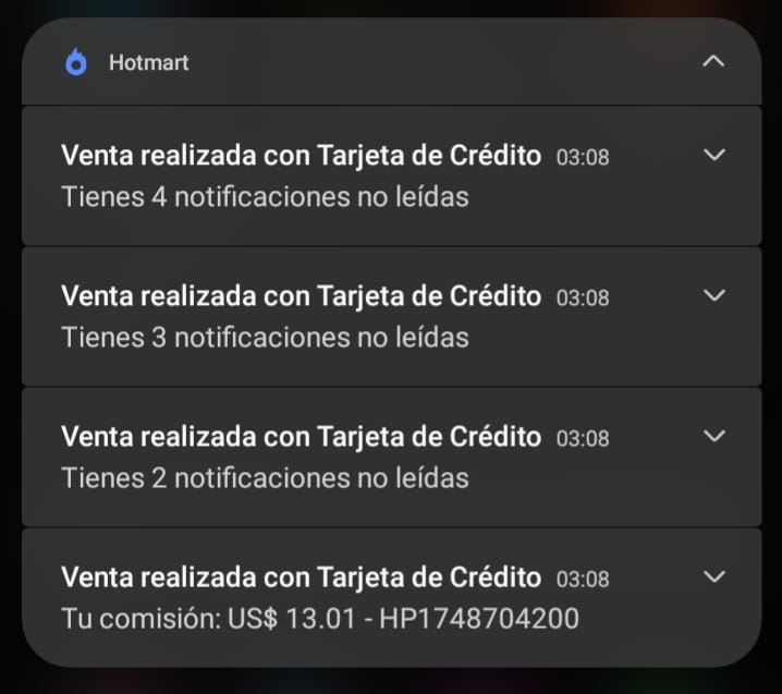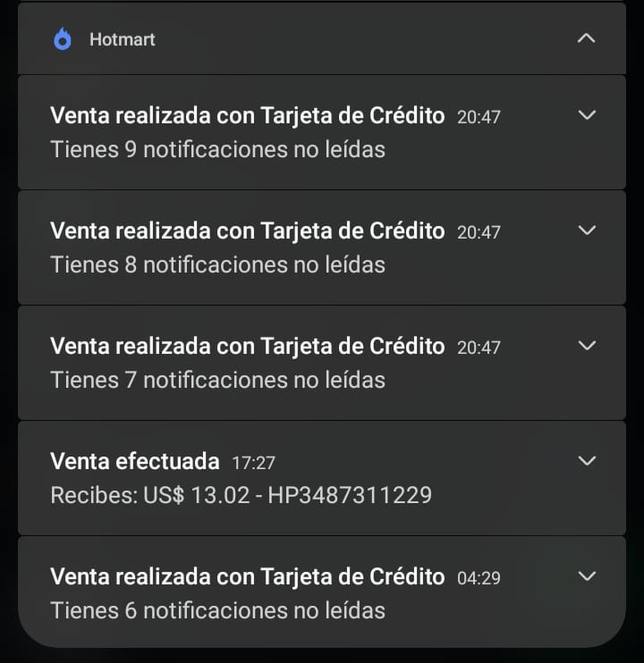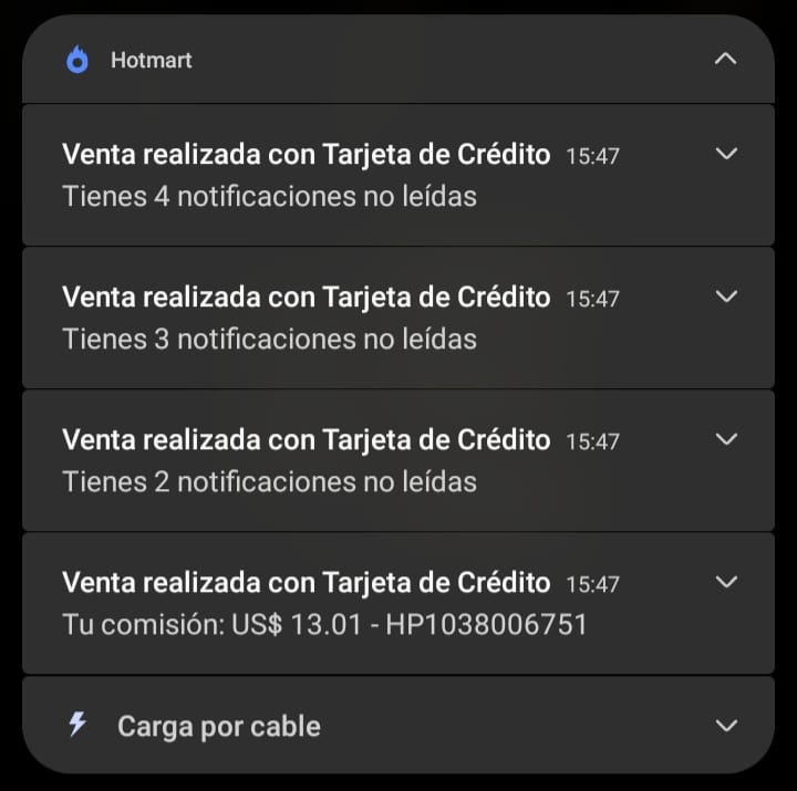 Estas son capturas de mi teléfono, de ventas que realicé de un solo producto digital, todas en piloto automático. Incluso algunas de ellas, llegaban mientras yo dormía, miraba una serie o salía a bailar…